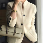 Mejora tu ropero con el cárdigan de cachemir con fila de botones « Arlette », donde la comodidad se encuentra con el estilo clásico.