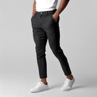 Explora nuestro pantalón elástico premium Gwenaël, que logra un equilibrio perfecto entre comodidad, flexibilidad y un estilo contemporáneo. Confeccionado en un material suave y elástico que se adapta a tus movimientos, es perfecto tanto para la oficina como para tus fines de semana de descanso. Su corte limpio y adaptable permite combinarlo con toda tu ropa, desde camisas y blazers formales hasta camisetas y zapatillas casuales. Duraderos pero ligeros, ofrecen comodidad todo el día sin perder estilo.