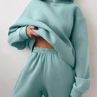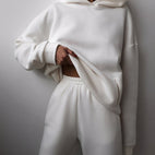 El conjunto Jasmine incluye una sudadera con capucha grande y pantalones deportivos combinados, ofreciendo comodidad y libertad de movimiento. Materiales suaves aseguran una sensación cómoda al llevarlo, mientras que el diseño moderno lo hace ideal para el ocio. Perfecto para trabajar en casa, paseos o días de descanso fuera de casa.