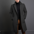 Conoce nuestro abrigo largo Kévin para hombre con solapas, una mezcla perfecta de estilo, abrigo y versatilidad. Hecho con materiales de alta calidad, este abrigo brinda suavidad y comodidad a la vez que te mantiene calentito en climas fríos. Su diseño ajustado y solapas estructuradas crean una figura elegante que se adapta tanto a eventos informales como formales. Ligero pero cálido, es genial para usar sobre un traje, un suéter o ropa casual. Mejora tu closet con una prenda clásica que transmite elegancia y confianza a donde vayas.