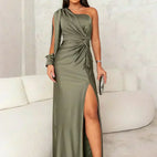 Haz una entrada inolvidable con el vestido Melyssa, un vestido de noche de un solo hombro que encarna una sofisticación sin esfuerzo.
