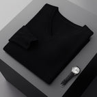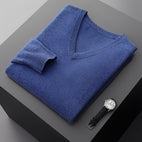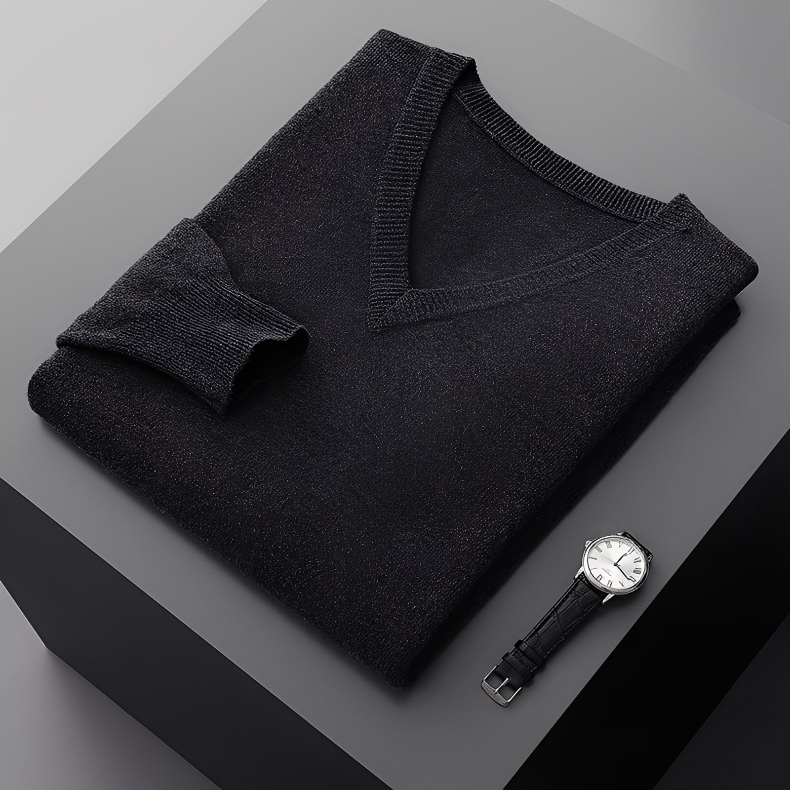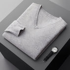 El suéter de cachemir 'Myron' se distingue por su elegancia sencilla y su suavidad incomparable. Hecho de cachemir de calidad, brinda calor sin ser pesado. Su clásico escote en V añade un toque moderno y versátil, perfecto para la oficina, tiempo libre o eventos formales.