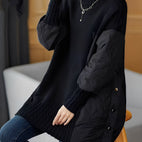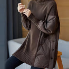El suéter de cuello alto Vonda es imprescindible para los días más fríos. Su diseño holgado permite libertad de movimiento, y el diseño de patchwork en tonos chocolate aporta un toque moderno. El material suave retiene el calor de manera agradable, haciendo de este suéter un acompañante perfecto para el otoño e invierno. Combínalo con jeans o faldas para un estilo relajado pero con clase.