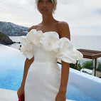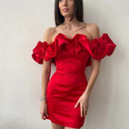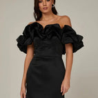 Waverly - Vestido satinado con volante sin hombros: Añade un toque de glamour