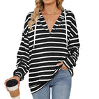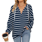 Este suéter con capucha a rayas une confort casual con un diseño moderno. Su ajuste holgado permite moverte con libertad y la capucha añade estilo y practicidad. Confeccionado con un material suave, resulta placentero al tacto y es ideal para relajarte, usar a diario o descansar en casa. Combinable con jeans, leggings o shorts, esta sudadera es un añadido versátil para cualquier look informal.