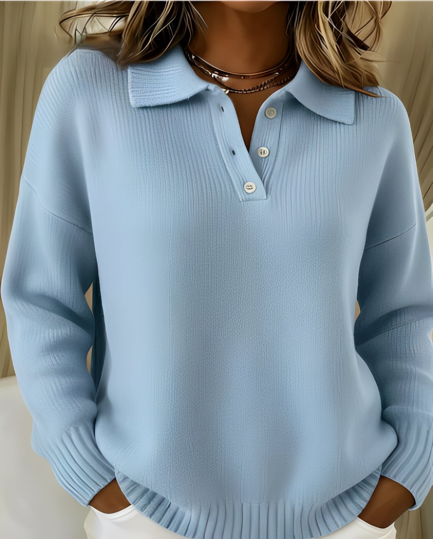 Katherina - Blusa casual de manga larga con cuello redondo para mujer